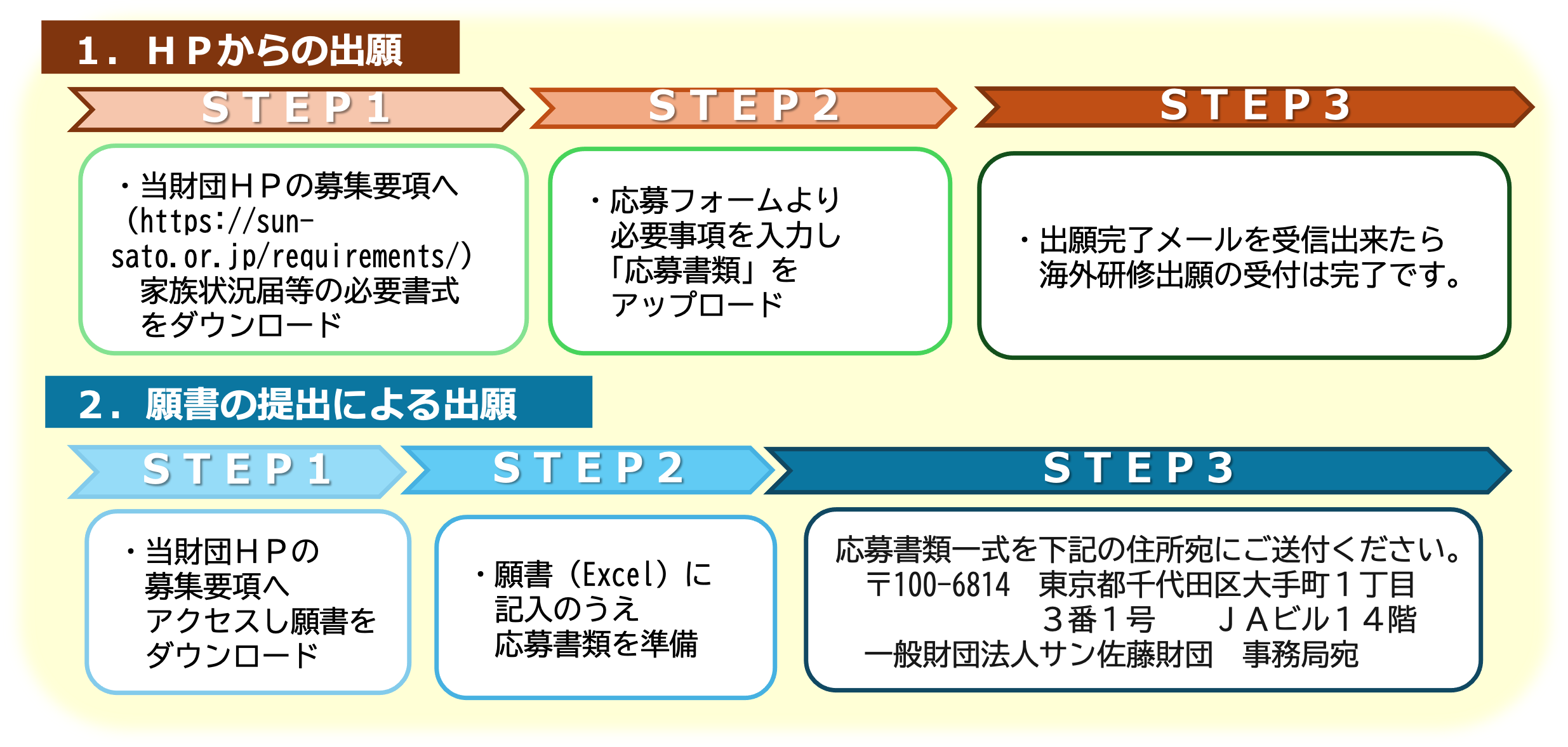 ※学校で取りまとめて出願される場合、出願方法は当財団HPの募集要項をご参照ください。